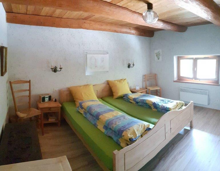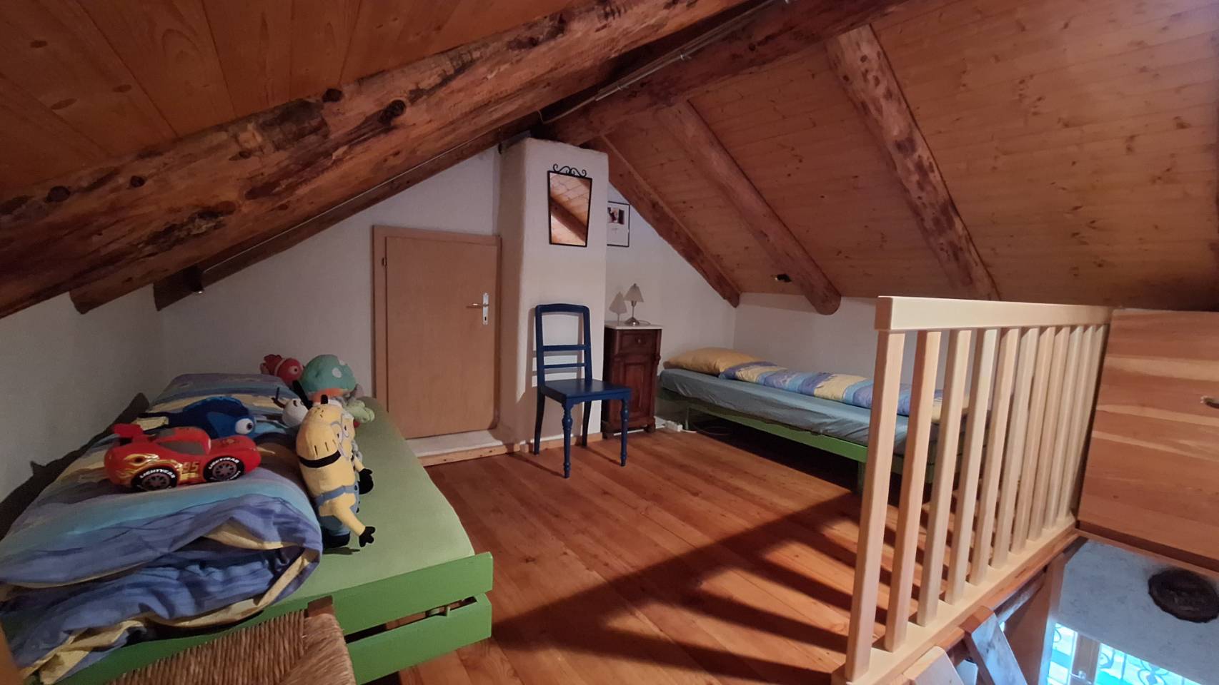 - 1 Schlafzimmer in der Mansarde im 2. Stock, 1 Doppelbett und 2 Einzelbetten